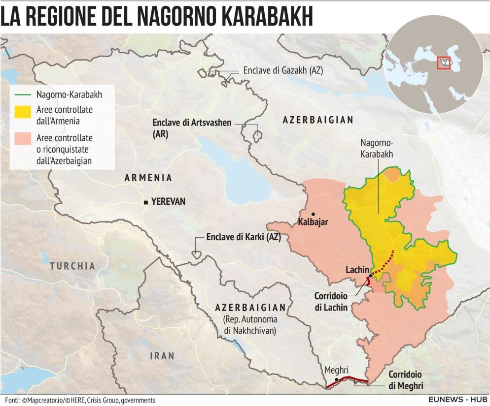 L'attacco militare arriva dopo mesi di tensione attorno alla regione a maggioranza armena in Azerbaigian, per la quale Erevan e Baku si sono già affrontate in due guerre, dopo il crollo dell'Urss ai primi degli anni Novanta e nuovamente nel 2020. Dallo scorso dicembre, l'Azerbaigian aveva di fatto bloccato il corridoio di Lachin, unica via di collegamento fra il Nagorno Karabakh e l'Armenia, mettendo a rischio il rifornimento di beni essenziali.