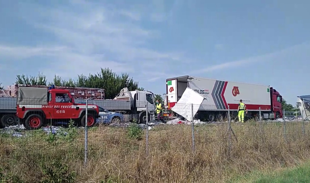 E’ di un ferito grave il bilancio dello spaventoso incidente avvenuto questo pomeriggio, poco prima delle 17.00, lungo l’autostrada A21 e che ha visto coinvolti due mezzi pesanti. Lo scontro, le cui cause sono ancora da chiarire, è avvenuto all’altezza di Castel San Giovanni, chilometro 142 sud in direzione Piacenza. Ad avere le peggio uno dei due autotrasportatori al volante, trasportato dai soccorsi all’ospedale Guglielmo da Saliceto. Non sarebbe fortunatamente in pericolo di vita. Traffico in tilt.