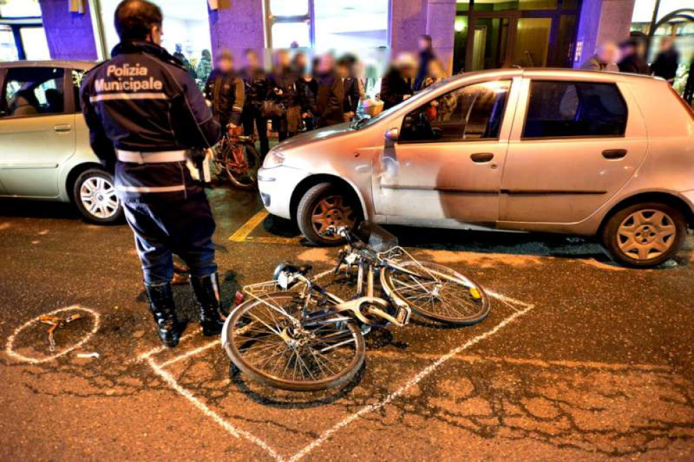 Via Genova, apre la portiera e fa cadere una donna in bici. Traffico bloccato