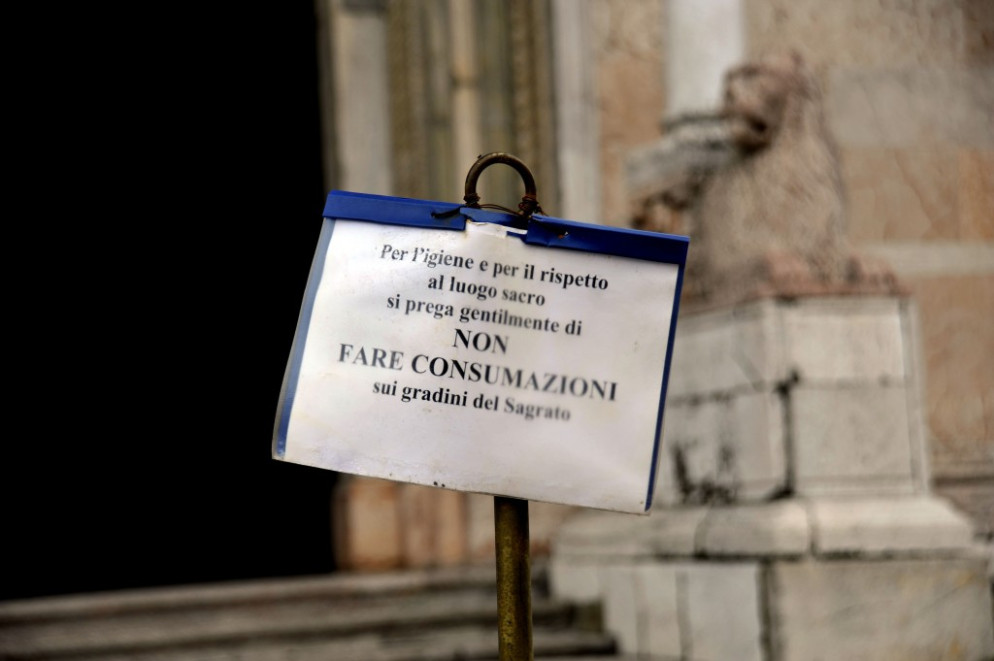 Chissà che presto non possa spuntare un nuovo cartello come quello messo più volte da monsignor Anselmo Galvani, il quale invitava a non consumare gelati e bibite sul sagrato del Duomo, spesso lasciato poi pieno di sporcizia.