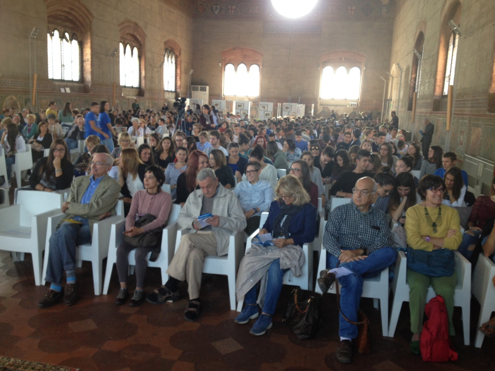 “Se mai nascerà davvero una effettiva Unione europea, sarà per merito di questi ragazzi: per questo dobbiamo lanciare loro messaggi chiari e corretti “. Il giornalista Lucio Caracciolo è stato protagonista dell’incontro di questa mattina nel salone di Palazzo Gotico per la seconda giornata del Festival del Diritto. Intervistato da Massimiliano Panarari si è rivolto soprattutto ai tanti giovani in platea: “Quando avevo la vostra età, l’Italia era sul confine tra est e ovest, tra filo-americani e filo-russi. Oggi siano al limite tra ordine e caos, solo il Mediterraneo ci separa da Stati che in molti casi non si possono neppure chiamare così, in cui la violenza domina. Il mondo sta cambiando, l’Europa deve avere un ruolo fondamentale, a patto che risolva i suoi problemi interni e trovi una linea comune. Ma non è con i fili spinati contro i profughi che si risolvono situazioni così complesse”.