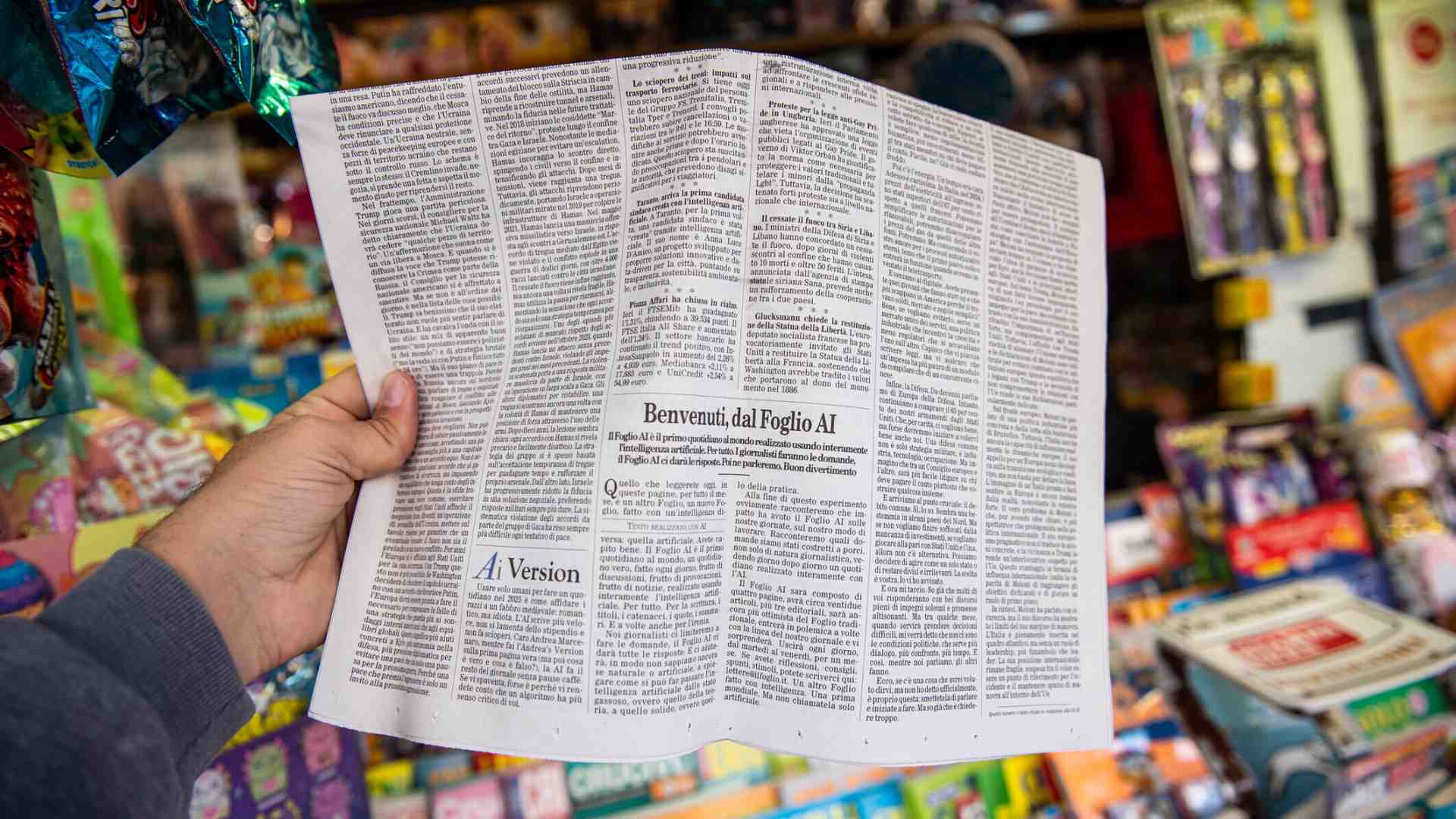 L’AI prende carne e consistenza solidissima quando la adotta un giornale di carta, non importa se sia di nicchia, piccolo, o un grande giornalone internazionale di quelli, e sono tanti, che in Europa e nel mondo intero hanno mostrato autorevolissima curiositas per l’esperimento del Foglio. Al giornale di carta l’AI può servire come un doppio o una replica di contenuti, e perfino stilistica, basta che un direttore e il suo team pongano le domande giuste e umanissime e abbiano il coraggio di stampare, impaginare, ordinare “nella preghiera del mattino dell’uomo moderno” (Hegel) le risposte talvolta, spesso, quasi sempre, incredibilmente soggettive, umanizzate, personalizzate perfino, della macchina algoritmica. Ma no ink, no paper, no AI party. Domande e risposte sono altrettanto importanti, le risposte spaventosamente stupefacenti, ma il risultato, convogliato in un layout ordinato e leggibile anche senza di lei, in una testata, in un ordine di stampa, in una rotativa, in un torrente di inchiostro, in una distribuzione, in un acquisto, e nel suo simulacro online, per abbonamenti, che prende un senso speciale dall’essere la replica di un cartaceo, diventa un risultato fuori dell’ordinario, appunto solido, come ha ricordato il direttore a centinaia di giornalisti, colleghi cartacei in massima parte, di tutti i continenti.