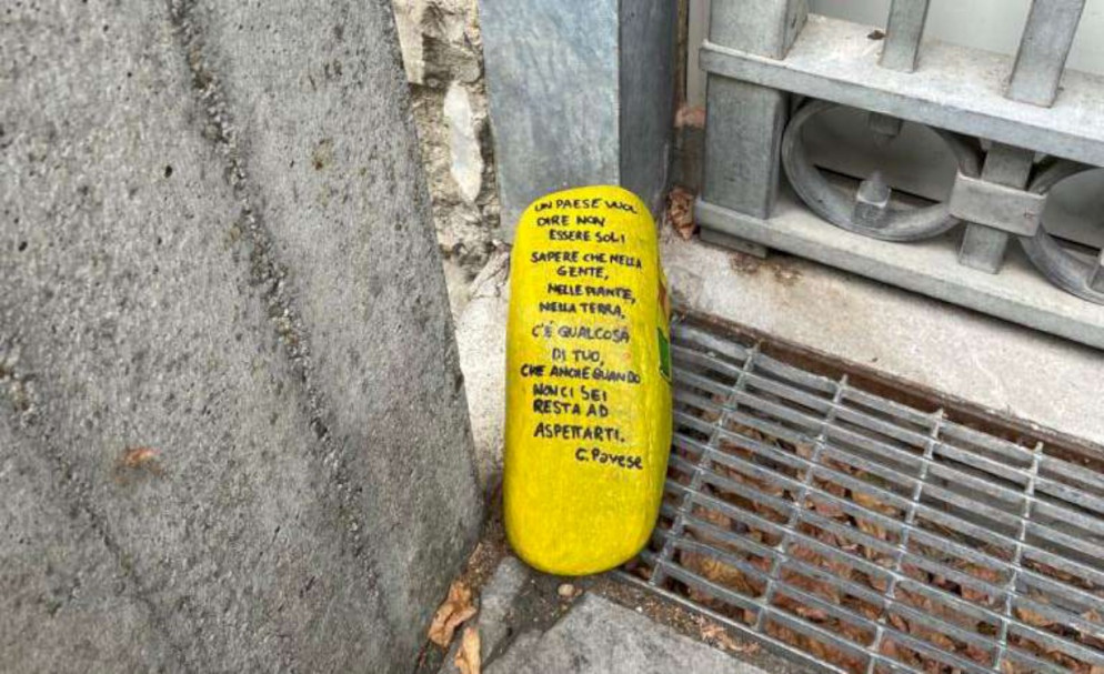 “Un paese vuol dire non essere soli – recita una frase scritta su un sasso -, sapere che nella gente, nelle piante, nella terra, c’è qualcosa di tuo, che anche quando non ci sei resta ad aspettarti”. Ed ancora, nell’altro: “Nel cuore non esiste la tristezza se nel mondo si coltiva pace, felicità, amore”. I due sassi sono stati posti all’ingresso del municipio a Podenzano perché tutti, entrando, possano leggere, riflettere e sorridere.