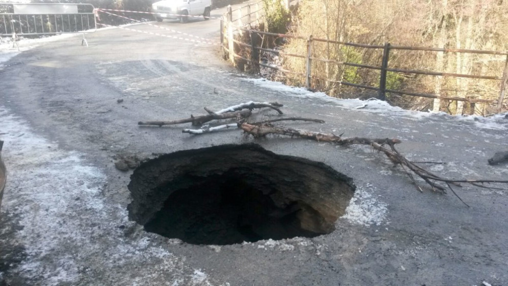 Ottone, voragine sulla carreggiata. Chiusa la strada per Gramizzola