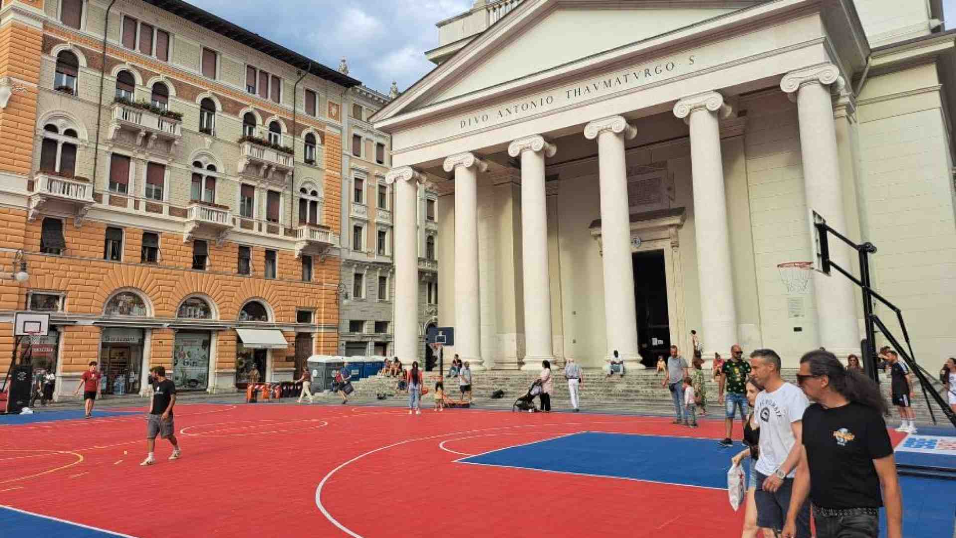 Quattro canestri al posto di due, sei giocatori invece di cinque. Uno sport sì, ma soprattutto una visione, partecipazione viva in cui l’inclusione si fa movimento, agonismo, amicizia. È il baskin, non un refuso, semmai un derivato, una forma nuova di gioco in cui disabili e normodotati giocano insieme. Stessa squadra, stessa partita. Basta recinti: baskin è sport senza steccato, esempio vivo, qui in piazza a Trieste, del gioco che si adatta ai giocatori, non viceversa, del pensare finalmente da squadra, davvero.
