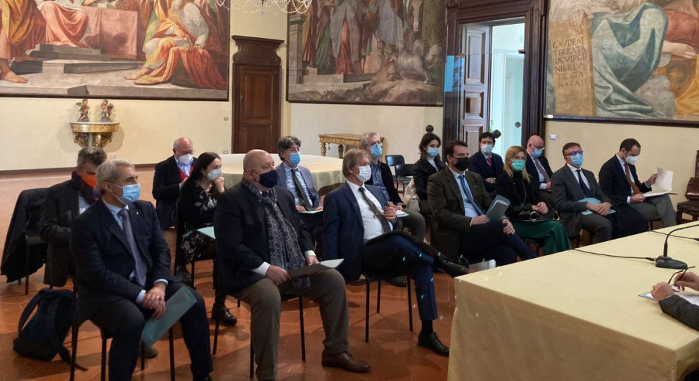 Presenti all’incontro con il vescovo il presidente dell’Opera, Giovanni Struzzola, il direttore dei Beni Culturali e artistici della diocesi, Manuel Ferrari, e i rappresentati di tutte le categorie economiche.