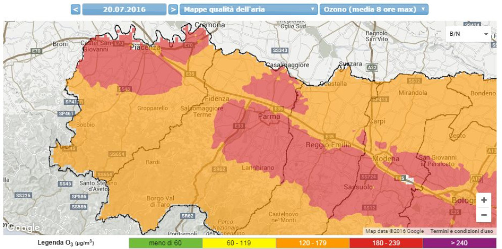 Il picco massimo è stato raggiunto alle 14 di mercoledì scorso, 20 luglio, con 225 μg/m³ – su una prima quota di attenzione di 180 e la soglia d’allarme a 240 – a causa dell’irraggiamento solare che non ha dato tregua e dell’inquinamento, una combinazione dannosa per la salute. L’ozono, infatti, può provocare problemi alle vie respiratorie perché è un irritante delle mucose e un ossidante. Il consiglio è di non uscire nelle ore più calde della giornata e soprattutto di evitare l’attività fisica all’aria aperta. Particolare attenzione va riservata ai bambini, agli anziani, alle persone asmatiche o con disturbi respiratori.