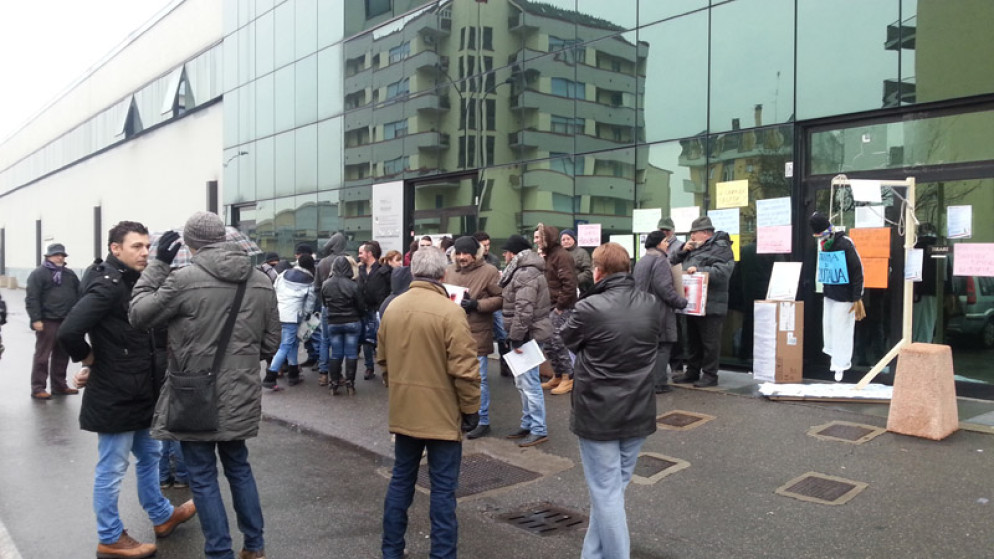 Sit-in di protesta davanti alla sede di Equitalia in via Modonesi
