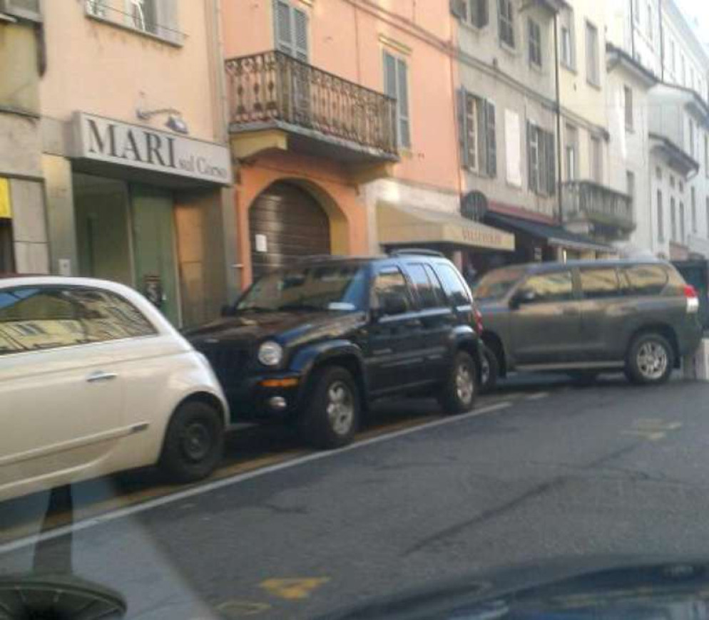 Non c’è mai un posto libero per parcheggiare, né sulla ciclabile né sui marciapiedi del Corso!