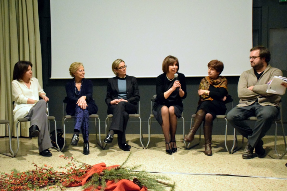 “La mia esperienza – ha raccontato – è cominciata negli anni ’70 e mi sono divertita a fare tantissime cose, dai lavori di grafica alle recensioni degli spettacoli. Ricordo di allora i krapfen della signora Prati alle tre del mattino. Sono stata io a portare in azienda altre donne. Oggi la televisione è un mondo quasi completamente femminile, con mia figlia Enrica Prati presidente e con Nicoletta Bracchi direttore. Mi ricordo – ha proseguito – le tecniche di allora per stampare il giornale, ricordo che era un lavoro davvero hard; in quello che oggi è il museo della stampa c’era caldissimo e si lavorava in calzoncini corti anche in inverno. Siamo forse l’unico giornale al mondo che ha mantenuto la vecchia tipografia. Credo che la mia sensibilità femminile sia servita proprio a mantenere questi pezzi di storia. Penso – continua Donatella Ronconi – che le donne che sono oggi ai posti di comando abbiano faticato tanto. Io sono qui per ragioni familiari, ma per guadagnarsi la poltrona ci vuole tanta volontà e la forza la trovi dentro di te. Il rispetto, una donna, se lo devo guadagnare. Io – ha concluso -, quando è mancato Marcello mi sono trovata da sola. Ernesto faceva il direttore. Io ho gestito l’azienda un po’ come se fosse una casa ricreando un ambiente familiare”.