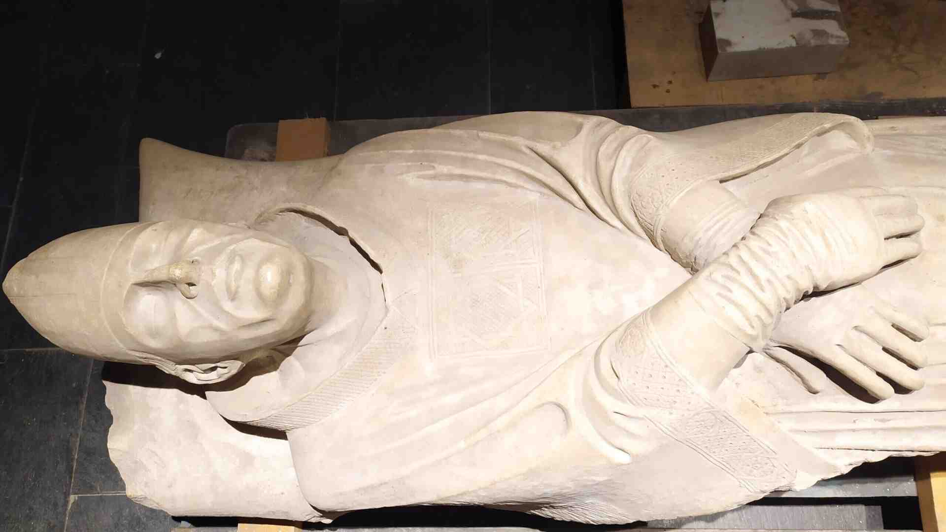 Man mano che la famiglia Fieschi diminuiva di importanza e centralità nella politica genovese, il monumento veniva declassato nelle dimensioni e nella sua collocazione all’interno della maggiore chiesa della città. Si potrebbe parlare di “tragedia della sepoltura”, come per il più celebre monumento funebre di Giulio II che tanto fece penare Michelangelo nel corso della sua vita. Questa vicenda vede oggi finalmente un risvolto nuovo, grazie al lavoro paziente e virtuoso del Museo diocesano di Genova, che custodiva i frammenti del monumento dal 1991. Nel 2020 sono cominciati i lavori che hanno portato a un nuovo allestimento, che non vuole essere una ricostruzione ma solo una proposta per fare dei passi in avanti negli studi e poter tornare a godere del sepolcro nella sua parziale integrità. Negli ambienti oscuri del museo ci si imbatte così nel riverbero bianco del monumento, che si può vedere sia dal basso, come si presentava ai fedeli in origine, che dall’alto, potendolo quindi osservare più da vicino. Da sopra i due angeli che dischiudono le tende si manifestano in tutta la loro travolgente espressività. L’angelo che apre le tende per mostrare il corpo del morto è un motivo topico, ma le dimensioni e la forza plastica di questi fanciulli angelicati sono quasi unici, a tal punto che a confronto gli angeli del sepolcro di Maria d’Ungheria di Tino di Camaino a Napoli, uno dei pochi monumenti funebri del Trecento paragonabili per importanza a quello genovese, sembrano stanchi di reggere la cortina (parafrasando Longhi).