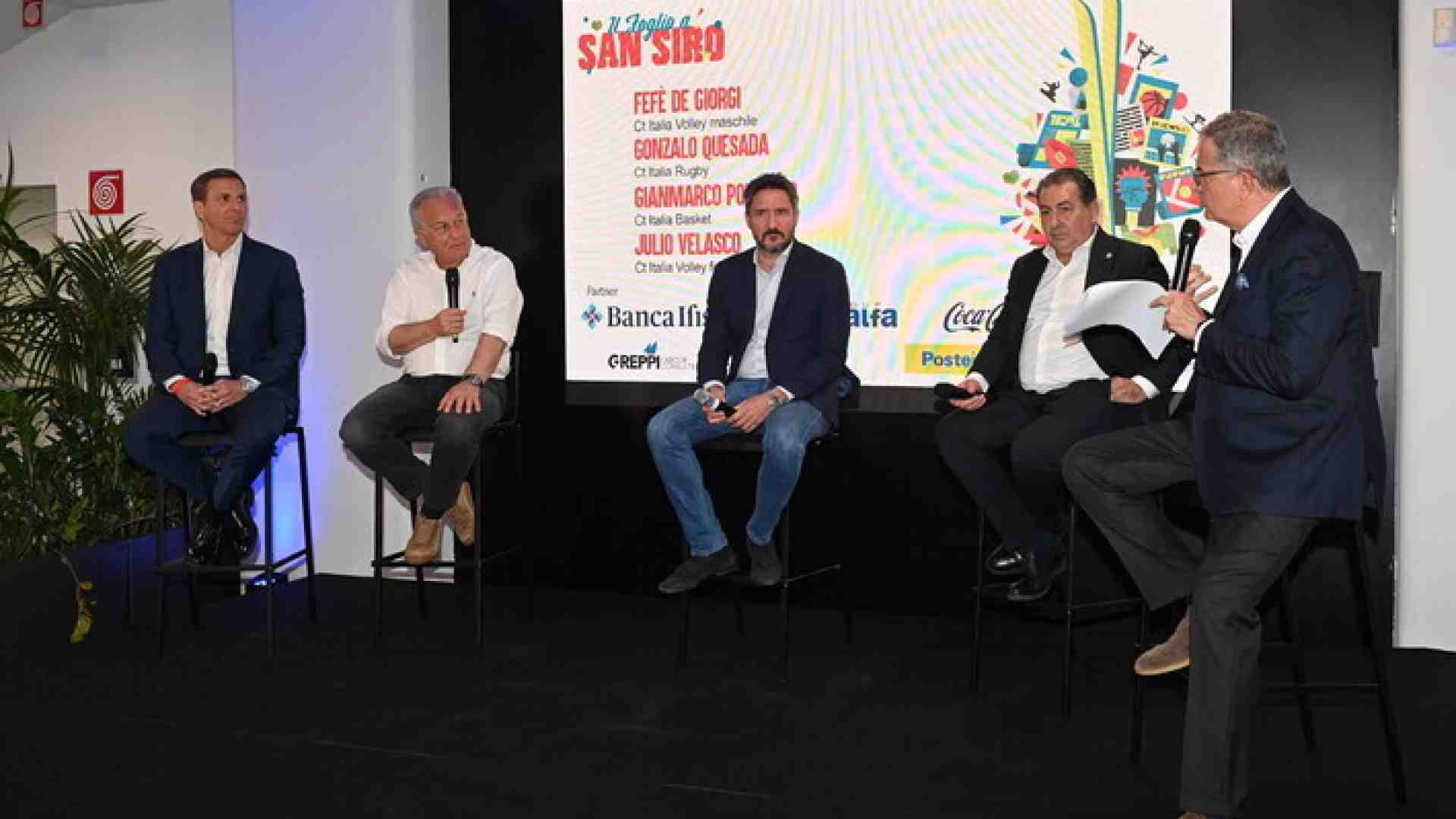 “Il Foglio a San Siro” ha riunito nello Stadio San Siro, volti noti del panorama sportivo italiano per discutere di diversi argomenti. L’evento si è svolto in due sessioni, mattutina e pomeridiana. L’argomento principale della sessione mattutina è stato l’atteso evento delle Olimpiadi Milano-Cortina 2026. Carmelo Carbotti, responsabile marketing strategico e ricerca di Banca Ifis, ha illustrato con numeri e grafici l’impatto economico del turismo sportivo, evidenziando una crescita dell’8% rispetto al 2023. Durante i Giochi sono attesi 2,5 milioni di visitatori e un’audience globale stimata in 3 miliardi di persone. Un’occasione non solo per lo sport, ma per valorizzare l’enogastronomia, la cultura e l’intero sistema turistico italiano. Marco Balich, direttore creativo della cerimonia d’apertura, ha poi svelato alcuni retroscena dell’organizzazione, sottolineando l’unicità di un evento che per la prima volta avrà due location. Una di queste sarà proprio San Siro, il team che si occupa della cerimonia però ha tempi ristretti di preparazione delle prove e avranno lo stadio 12 giorni prima della cerimonia. Infatti le prime prove avverranno da un'altra parte e poi verranno trasferite di dopo a San Siro. A sorpresa è salito sul palco anche Fabio Capello, che ha parlato di Inter, Milan, Juventus e delle ultime partite di Champions League. E’ salito sul palco anche Paolo Scaroni presidente del Milan dove ha parlato della situazione del Milan in questa stagione e della volontà di continuare a rafforzare la squadra per avere una grande stagione il prossimo anno. Inoltre ha parlato del rapporto tra Ibra e Furlani dove ha detto che vanno d’accordo e ha aggiunto che Ibra è un valore aggiunto al Milan e vede un clima positivo tra loro. Inoltre il Milan si sta guardando intorno per il nuovo DS perchè oltre a rafforzare la squadra vogliono anche rafforzare la dirigenza. Infine si espone sulla situazione San Siro dicendo che ad oggi la situazione è costruire un nuovo stadio a San Siro, giocare al Meazza fino a quando il nuovo stadio non sarà pronto e poi traslocare. Poi dove c’è il Meazza adesso lasciare delle vestigia di questo stadio e porteranno la sede del Milan e dell’Inter e anche un albergo. Nel pomeriggio ha parlato sulla stagione il presidente dell’Inter Giuseppe Marotta dicendo che anche se non si dovesse arrivare a vincere qualcosa la stagione è positiva, ha parlato degli impegni di questo mese e dell’ottima prestazione dell’Inter a Monaco. Un momento particolarmente coinvolgente è stato quello con i quattro CT delle nazionali italiane: Fefè De Giorgi (volley maschile), Gianmarco Pozzecco (basket), Gonzalo Quesada (rugby) e Julio Velasco (volley femminile). Insieme hanno fatto degli interventi molto belli e interessanti sulle dinamiche dello spogliatoio su come trattare i giocatori se come figli o essere più distaccati, e su come affrontare le partite importanti con che mentalità e anche sui discorsi che ci possono essere nello spogliatoio prima di queste partite. Inoltre si è parlato di com’è difficile vincere e soprattutto ripetersi. Ci sono stati anche aneddoti e battute molto belle che hanno reso l’intervento molto piacevole. Un altro intervento molto interessante è stato quello di Giulia Ghiretti (Campionessa paralimpica di nuoto), Stefano Raimondi (Campione paralimpico di nuoto) e Giulia Terzi (Campionessa paralimpica di nuoto), dove hanno raccontato come nei primi anni della loro carriera il movimento paralimpico era agli inizi e di come ora si sta espandendo. Inoltre ci hanno raccontato di cosa hanno provato quando entrati in acqua infatti loro si sentono liberi. Inoltre parlano delle paralimpiadi e delle medaglie ricevute e di come ogni giorno ricevevano messaggi di biglietti comprati per assistere alle gare e questo dimostra la grande espansione che sta avendo il nuoto paralimpico ma in generale tutto il movimento. Un altro intervento bello è stato quello di Federica Masolin che ha parlato della sua carriera dagli inizi con Sky, di come ha scoperto che andava a condurre la F1 e di come ora si ritrova a lavorare nel post partita della Champions League.