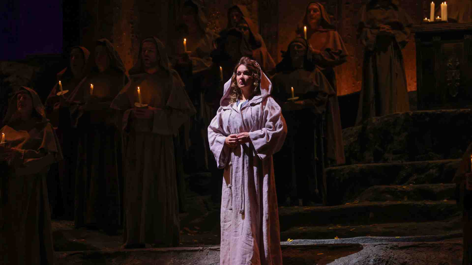 Certamente la donna Leonora scritta dal duca de Rivas nella sua “leyenda” “Don Álvaro o la fuerza del sino” è un esempio di sottomissione e auto-colpevolizzazione inaccettabile per questi tempi, ma se vogliamo era un’estremizzazione anche per l’anno 1862 in cui l’opera, col testo di Francesco Maria Piave, andò per la prima volta in scena a san Pietroburgo (le foto che ritraggono Verdi con colbacco e il paltò in stile russo, scattata in occasione della prima visita allo zar, sono strepitose). Già allora l’esaltazione del patetico, dell’eroe solo, byroniano, che lotta contro il destino cinico e baro come Alvaro, le fanciulle virtuose perseguitate dalla sorte in cui anche De Sade aveva intinto voluttuosamente il pennino ottant’anni prima, erano pretesti per parlare d’altro.