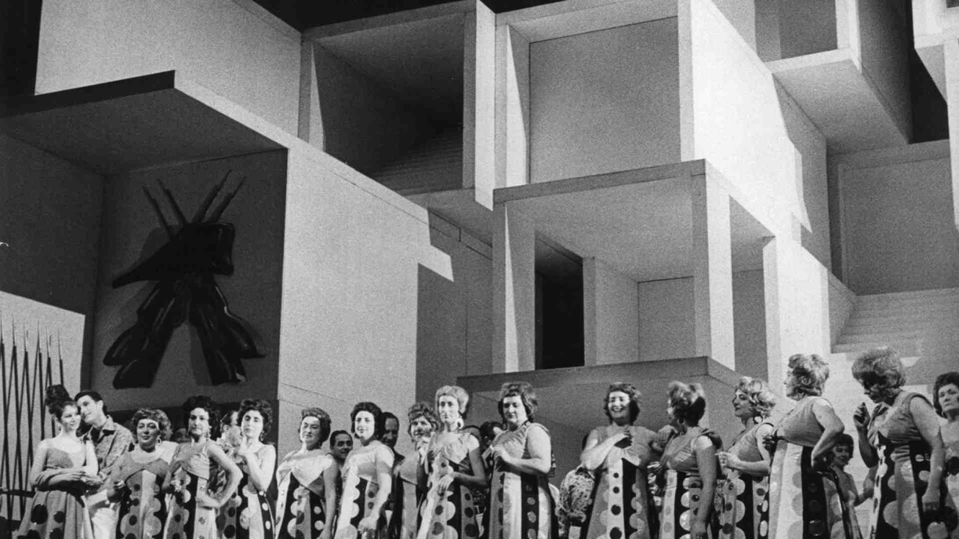 “I colori, le forme, la matita e le forbici sono sempre stati una mia passione, forse anche per una certa aderenza con quello che fu il mestiere di mia madre, ma la prima grande e indimenticabile esperienza fu per me quella della messa in scena della “Carmen” al Teatro Comunale di Bologna nel 1967, con Alberto Arbasino alla regia, Vittorio Gregotti alla scenografia, Roland Barthes come suggeritore e io, appunto, ai costumi, una pièce passata alla storia anche per il flop che ci fu lì per lì: andò in scena tra fischi e contestazioni. Ricordo una scala d’argento in scena, palline da ping pong, reti metalliche, grandi paillettes dal diametro di dieci centimetri”, aggiunge. “I costumi che immaginai allora erano realizzati, oltre che con quelle palline, con polistirolo, gomma piuma, rasi e plastica. Forme e colori alludevano con simbologie semplificate ai temi della pittura di allora. I pois, i segni, le strisce, gli ornamenti e i trucchi, tutto era stilizzato. Fu un evento importante, che diversi anni dopo venne ricordato da Luisa Laureati che gli dedicò una mostra alla Galleria dell’Oca di Roma”. Mentre ci parla, ci fissa negli occhi e ci stringe la mano: il suo è un affetto che sa di antico e che va ad unirsi ai semplici gesti e alle parole che rivolge alla direttrice della Fondazione, Giulia Lotti, e all’inseparabile assistente Tristan Panustan.