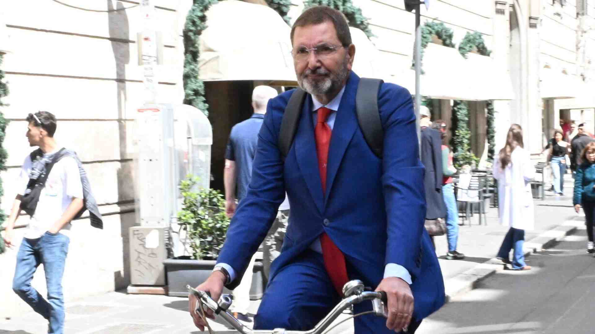 Lo avevamo lasciato nel 2015, Ignazio Marino, sindaco in bicicletta nonché aspirante pedonalizzatore defenestrato dal Pd nell’annus horribilis di Mafia Capitale. E in bicicletta lo ritroviamo, baldanzoso e sorridente, mentre entra – simbolo nel simbolo – in quel Palazzo Grazioli che fu teatro d’azione di Silvio Berlusconi ma ora è anche nuova sede della stampa estera, un tempo poco tenera con il Cav. Non bastasse, il Marino in bicicletta si reca a Palazzo Grazioli per annunciare ufficialmente la propria candidatura alle Europee con Avs, l’Alleanza Verdi Sinistra di Angelo Bonelli e Nicola Fratoianni. E infatti quando scende dalla bicicletta i due lo accolgono protettivi, assieme a un piccolo esercito di scienziati che riempiono le liste rosso-verdi con l’intento di dare all’Europa “il coraggio di osare”. Intanto il piccolo esercito con Marino al centro avanza nel cortile, e l’incedere in modalità “Quarto stato” di Pellizza da Volpedo rende l’occasione a suo modo solenne.