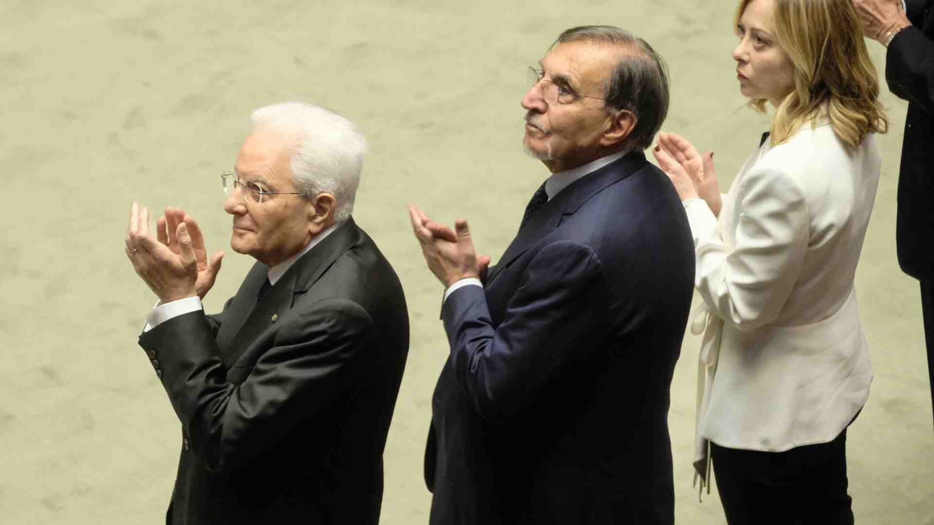 Oltre alla premier Meloni, oggi a Montecitorio c'erano il presidente della Repubblica Sergio Mattarella, il presidente del Senato, Ignazio La Russa, quello della Camera, Lorenzo Fontana, e il vicepresidente della Corte costituzionale, Giovanni Amoroso.