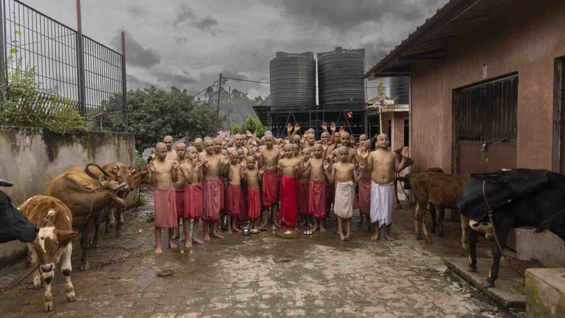 Dio benedica il bambino distratto. Una magnifica foto di Narendra Shrestha per l’agenzia EPA mostra una trentina di ragazzini, studenti accompagnati dall’insegnante, mentre pregano davanti al tempio di Pashupatinath, a Katmandu, per la festa indù di Junai Purnima. Rapati a zero e a torso nudo, sotto lo sguardo vigile dell’insegnante, i ragazzini nepalesi levano le braccia in posa ieratica, salvo un bambino che le tiene sì sollevate, ma si volta e mostra all’obiettivo il ciuffo residuo sulla nuca. Perché si volta quel bambino? Cosa ha visto o sentito che ha richiamato la sua attenzione, distogliendola dalla cerimonia?