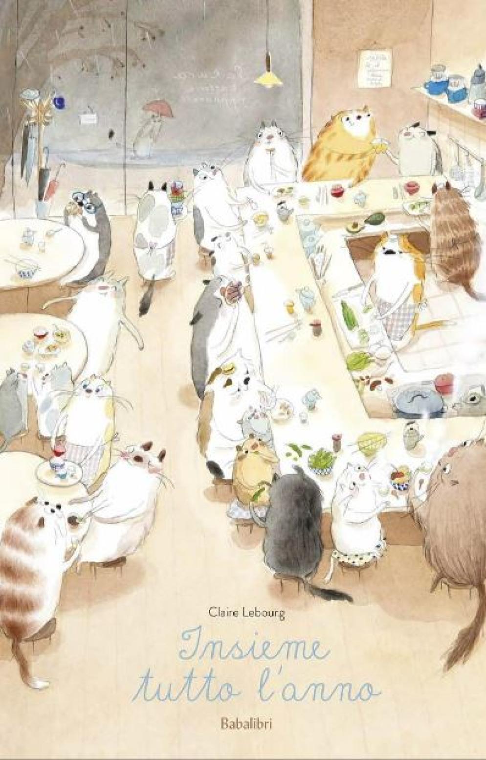 Gatti, gatti e ancora gatti. Con i suoi delicati acquerelli Claire Lebourg racconta senza parole una vita gattesca di gruppo che mimando quella umana attraversa tutte le stagioni e tutti i luoghi pubblici in cui si svolge l’esistenza. Mici e micette frequentano uffici, scuola, biblioteca, bar, parco, supermercato, ristorante, visitano gli anziani alla casa di riposo e partecipano a feste di compleanno, viaggiano, vanno al cinema e al mare. Vivono una vita tranquilla e conviviale in cui c’è posto per le chiacchiere davanti al tè e al caffè, per il passeggio rilassante, il pisolino a scuola, al cinema, in ufficio e all’ombra di un giardino mentre i cuccioli vanno in altalena. Persino per offrire un servizio al rifugio dei senza tetto e fare una capatina al negozio solidale. Vien da sorridere a vederli tutti in forma, con occhiali, cappellini, passeggini, zainetti, borse, borsette e borselli, umanizzati senza che perdano la loro dignità. Ne esce lo spaccato di una vita da sogno a cui qualsiasi umano vorrebbe aspirare, pacifica e di condivisione che piacerebbe anche a noi condurre. Un albo, infine, in cui non ci si stanca di osservare i dettagli, le somiglianze, di individuare le coppie e le famigliole e ritrovarle altrove, lungo il percorso delle quattro stagioni. Bello. Dai 4 anni