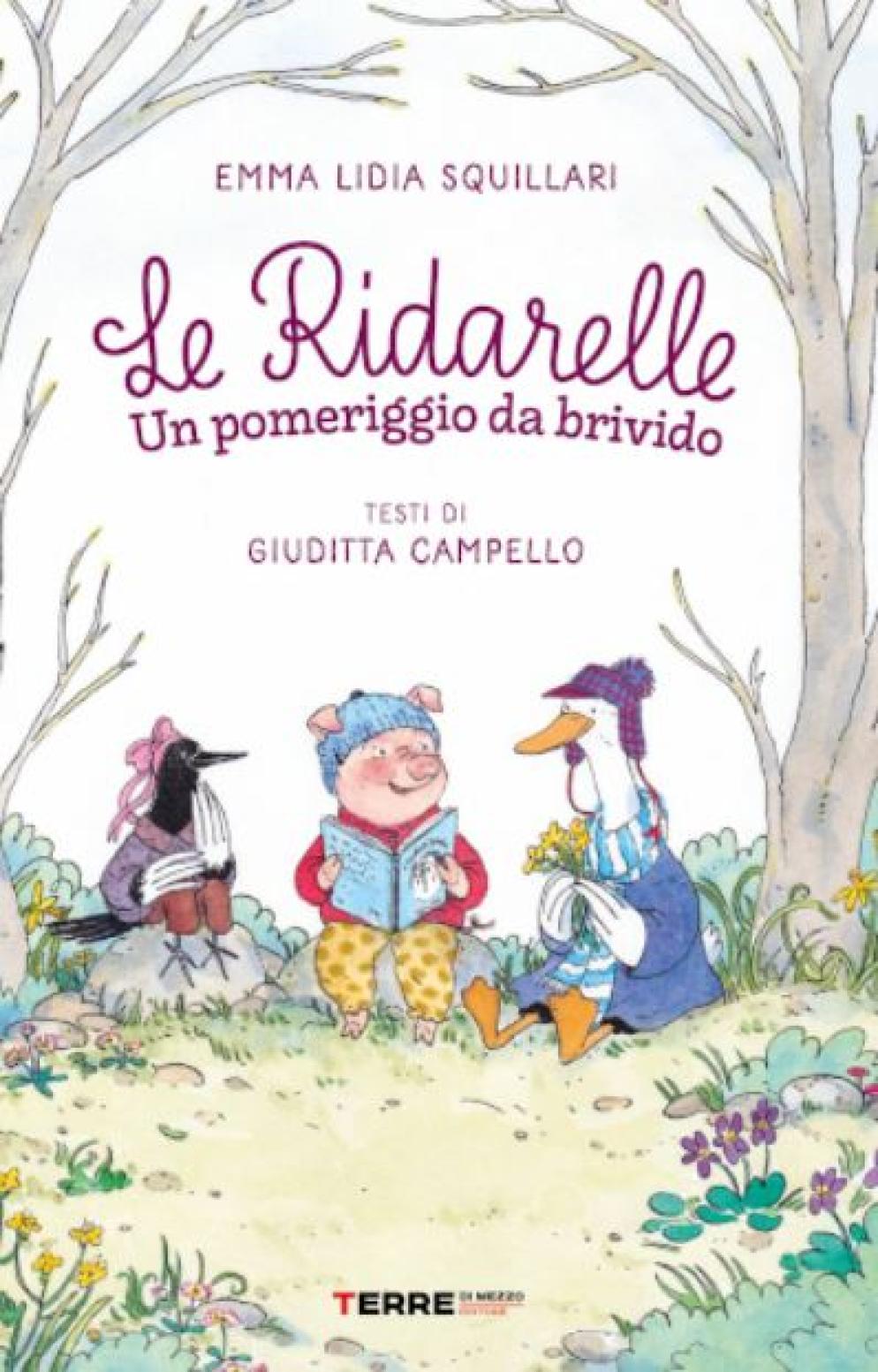 Secondo titolo della serie Le Ridarelle deliziosamente illustrata da Giuditta Campello, Dopo “Gita al lago” tornano con questa avventura le tre amiche Maialina, Oca e Gazza. In un pomeriggio un po’ così, grigio e annoiante, maialina ha solo voglia di starsene in poltrona ben coperta a leggere storie di paura, sgranocchiando biscotti mentre le due amiche vanno al fiume. Ma un temporale incombe e quando sotto una pioggia battente Oca e Gazza bussano a casa dell’amica, tra tuoni e fulmini va in scena una divertente commedia degli equivoci con maialina suggestionata dalla sua storia paurosa di fantasmi. Tutto bene quel che finisce bene. Con il testo in alfabeto maiuscolo, una storia perfetta per una lettura ad alta voce condivisa come per chi sta imparando a leggere da solo. Dai 4 anni