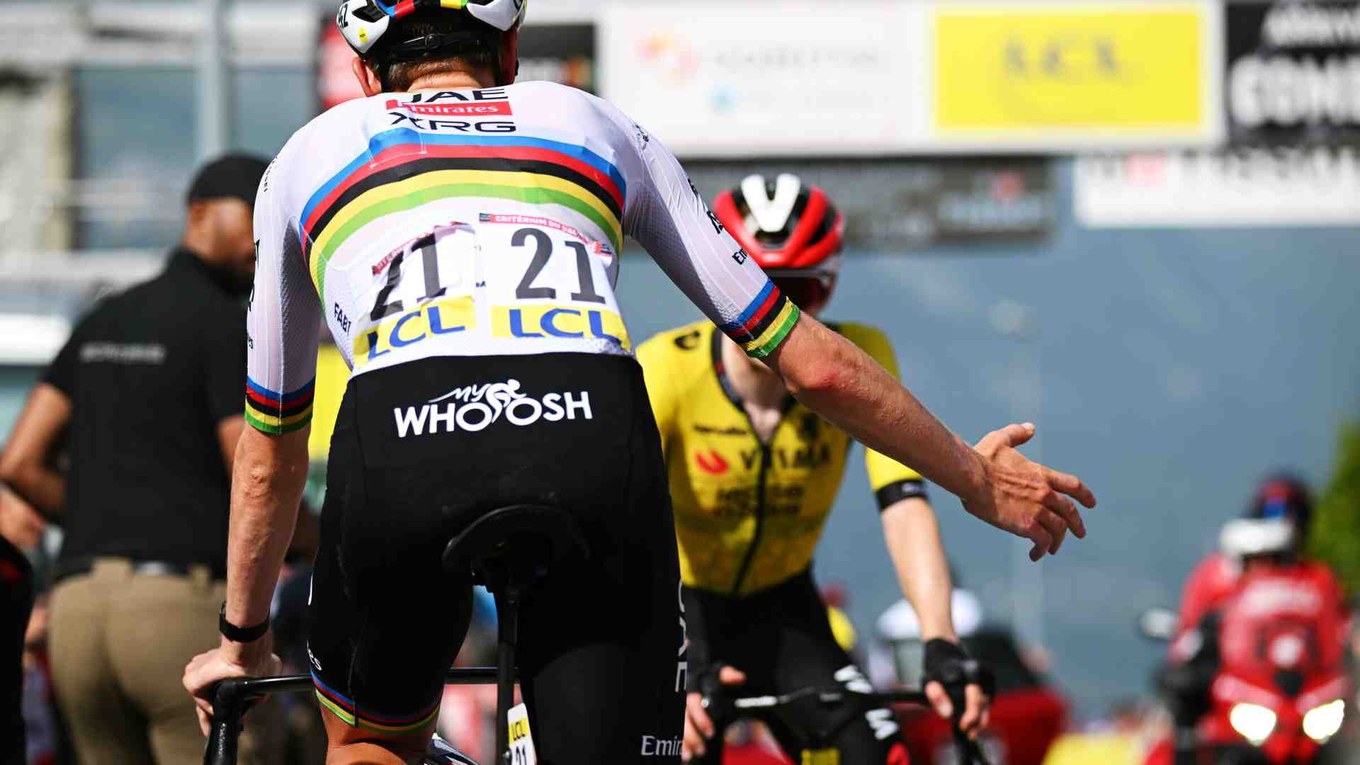 È successo tutto in poche decine di secondi. Jonas Vingegaard ha visto la schiena di Tadej Pogacar rimpicciolirsi pedalata dopo pedalata. Quattrocento metri dopo l'ha vista scomparire all'ingresso di una curva. Non l'ha più vista. Nemmeno all'arrivo. Si era già girato il campione del mondo, lo ha osservato oltrepassare la linea del traguardo, ai è avvicinato per dargli la mano.