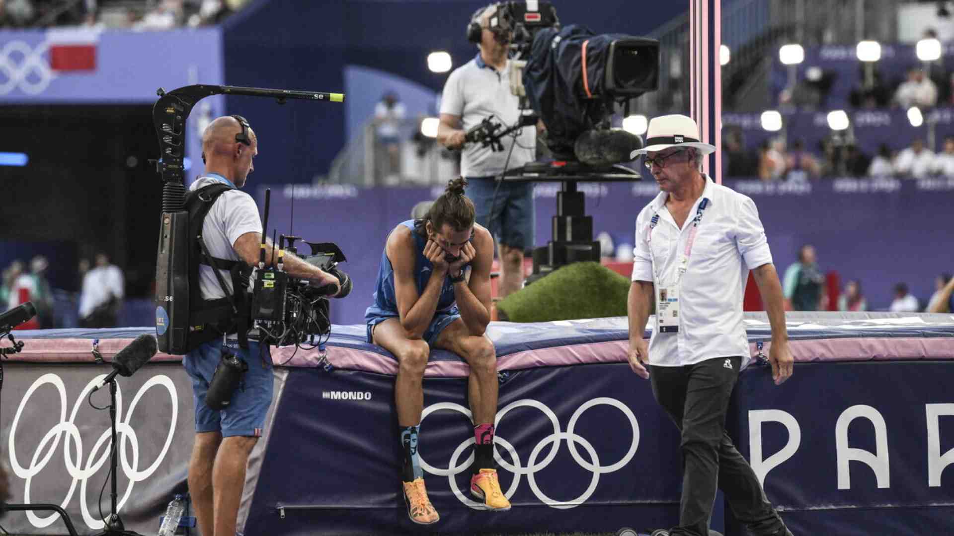 Non entra in gioco a 2,17, aspetta i 2,22 come il suo amico avversario Barshim. Parte male, incoccia nell’asticella dopo una rincorsa senza la solita velocità. Anche il secondo salto cinque minuti dopo non gli apre le porte dei sogni. È una lunga via crucis. Due minuti dopo tocca ancora a lui e questa volta vola sopra l’asticella facendo esplodere lo Stade de France. Sono qui tutti per lui e questo terzo salto è un salto alla Tamberi, come se improvvisamente sia riuscito a lasciarsi alle spalle il dolore che suo porta dentro da quando è sotto attacco renale. Ma a 2,27 ricomincia a fate i conti con se stesso. Misure che solitamente salterebbe a occhi chiusi, diventano barriere. Per il secondo tentativo chiede allo stadio di battere il ritmo, ma la benzina del tifo, non basta a farlo risorgere. L’espressione non promette nulla dio buono. Si siede un attimo sull’erba. Poi va a parlare con i suoi allenatori in tribuna. Cerca una parola di conforto. Ma avrebbe avuto bisogno delle energie che le coliche gli stanno sottraendo da giorni. Prima del terzo salto si inginocchia, prega, fa il segno della croce. Non serve. I suoi Giochi finiscono qui.