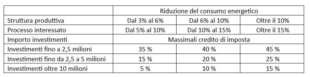 Questo credito d’imposta, sottolinea Piacenza, è riconosciuto a condizione che si realizzi una riduzione dei consumi energetici di almeno il 3% per la struttura produttiva o, in alternativa, di almeno il 5% del processo interessato dall’investimento. In particolare, la riduzione dei consumi energetici deve conseguire da investimenti in beni materiali e immateriali funzionali alla transizione tecnologica e digitale delle imprese secondo il modello “Industria 4.0”.