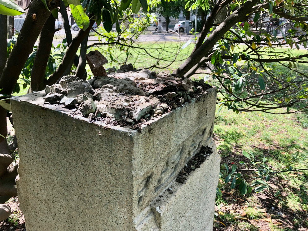 A prima vista è apparso subito come un atto vandalico di qualcuno che ha sradicato la statua e poi l’ha appoggiata sull’erba dei giardini. Ma non si esclude che possa essere stato il fortissimo vento della notte, con raffiche a oltre 60 chilometri orari, ad aver provocato lo scuotimento della pianta soprastante e quindi la caduta del monumento, che sarebbe quindi rotolato fino a ritornare incredibilmente nella sua posizione “naturale”. Il busto è stato recuperato subito ieri mattina dagli agenti della polizia locale con un camioncino, trasportandolo in un luogo sicuro. La statua, al momento, non appare danneggiata.