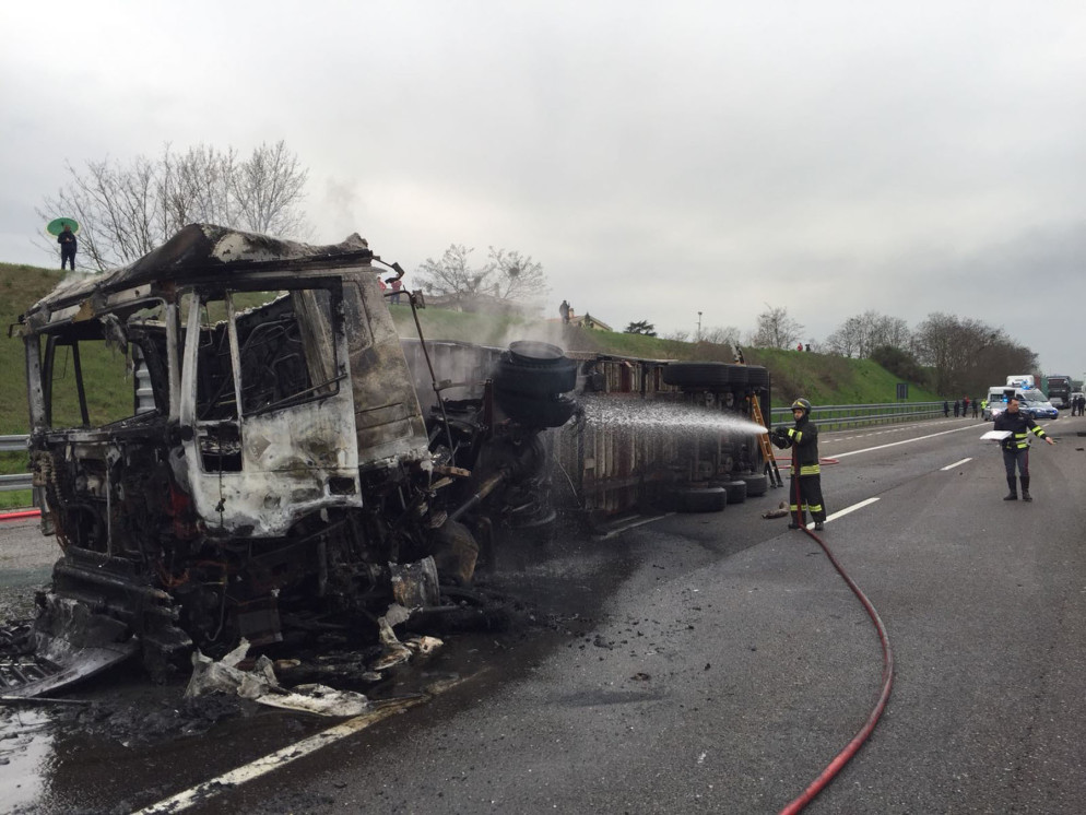e si è incendiato. E’ successo intorno alle 16.30 di martedì 3 aprile nei pressi del casello Piacenza Ovest. Fortunatamente le condizioni del conducente del mezzo non sono gravi, sul posto sono intervenuti i vigili del fuoco. L’autostrada è stata chiusa alcune ore tra Castel San Giovanni e Piacenza e i mezzi pesanti si sono riversati sulla via Emilia Pavese con pesanti disagi al traffico. La colonna di fumo provocata dall’incendio del mezzo era visibile anche in città.