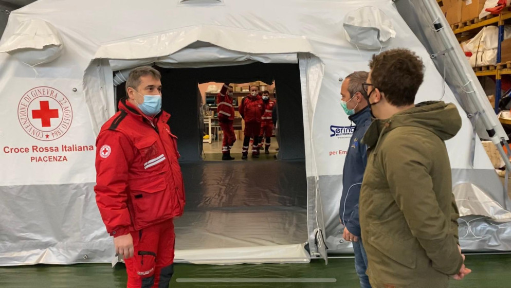 Tre aziende piacentine donano una tenda da campo alla Croce Rossa