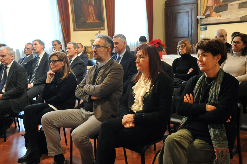 “L’occasione è felice per me perché, dal mio primo anno di vescovo di questa diocesi, ho ritenuto mio dovere esprimervi il mio ringraziamento personale e della comunità ecclesiale per il vostro servizio alla città e a tutti i cittadini della Provincia. Sappiamo di vivere in un periodo in cui la critica è molto facile. E sappiamo pure che è molto diffusa la sfiducia. Credo che sia doveroso reagire, riconoscendo il servizio al bene comune che voi esprimete in modalità diverse, tutte importanti. Oggi in particolare è necessario riconoscere e ridare valore e dignità a chi ha la responsabilità verso la civitas, verso l’ordine pubblico, verso l’amministrazione di una realtà sociale complessa e in trasformazione. Credo che siamo tutti convinti che il servizio per una buona convivenza e per una buona amministrazione della cosa pubblica sia anche un servizio prezioso per ricuperare fiducia e favorire un cammino comune lavorando insieme. Per questi motivi desidero dire a tutti voi – e anche a coloro che non sono presenti – una parola di incoraggiamento e di speranza perché insieme e con spirito di collaborazione, possiamo alzare il nostro sguardo ed aiutarci a non vedere solo gli aspetti difficili e problematici del servizio.