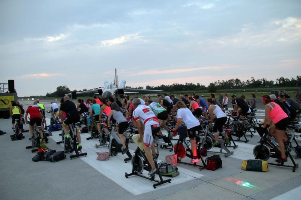 L’appuntamento “Vola…no col cuore” – sostenuto da Comune di San Giorgio e Aeronautica con numerosi sponsor privati – ha potuto godere di una location esclusiva e molto particolare: le cento biciclette “inchiodate” a terra sono state posizionate lungo le piste dell’aeroporto. Due ore di pedalata “in notturna” su due turni, il primo dalle 20.30 e il secondo dalle 21.30.
