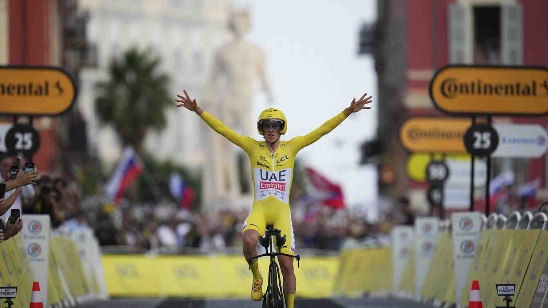 Questi tre mesi perfetti di una stagione perfetta, di quelle delle quali si parlerà a lungo, per sempre, perché non succede spesso, anzi succede quasi mai, che un corridore riesca a vincere Giro d’Italia e Tour de France in una stessa stagione, Tadej Pogacar li ha chiusi sulla Promenade des Anglais di Nizza. Al termine di trentatré chilometri e settecento metri a cronometro, gli ultimi di questo Tour de France edizione 2024, perfetti.