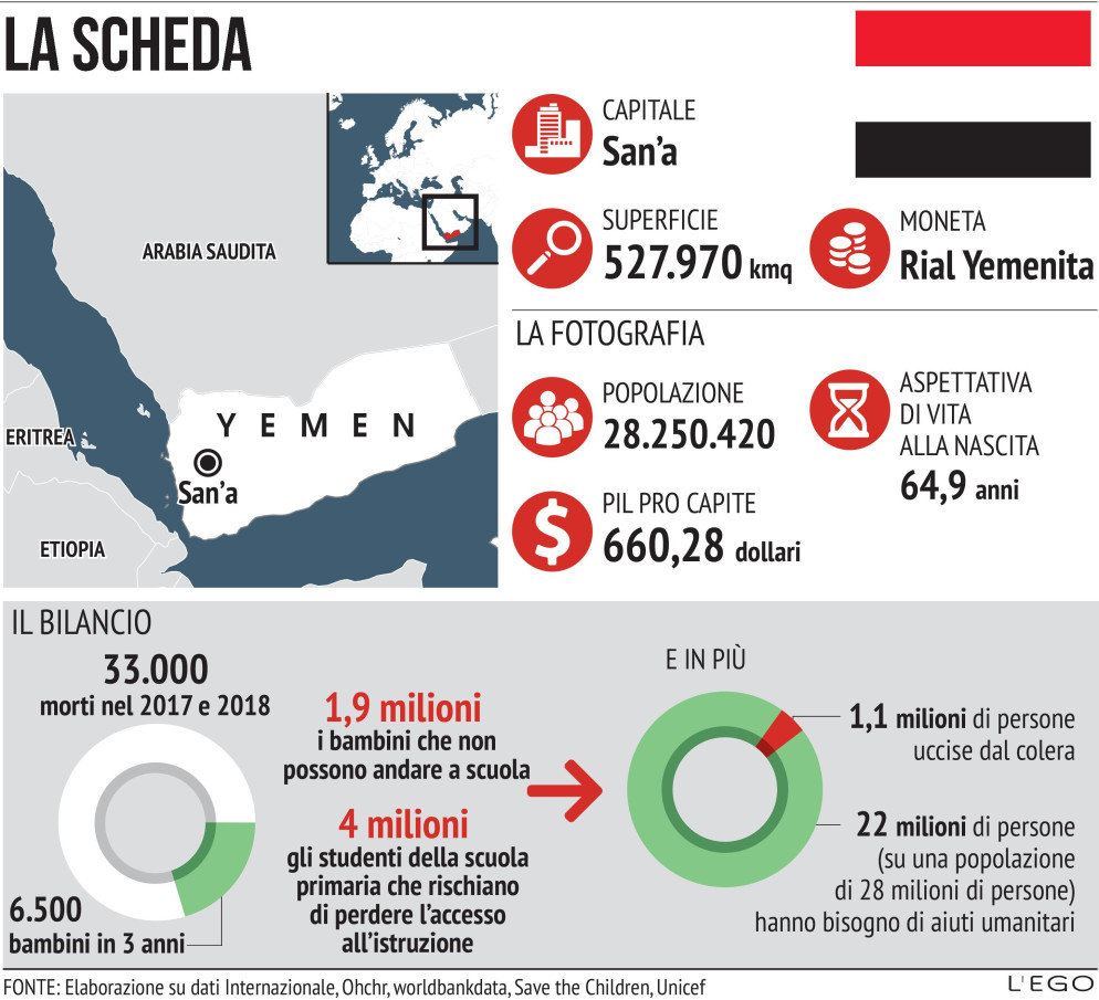 Di un bilancio di vittime civili «inconcepibile» ha parlato anche l’Alto commissario delle Nazioni Unite per i diritti dell’uomo, Michelle Bachelet, che ha chiesto «alla Coalizione saudita, alle forze pro-Hadi (Abd Rabbo Mansour el-Hadi, presidente della Repubblica dello Yemen dal dimissionamento forzato di Ali Abdallah Salah, nell’autunno 2012), a quelle Houthi, a chi fornisce le armi, a tutte le parti in conflitto oltre a chi ha influenza o il potere necessario, di far cessare la fame e dare un po’ di respiro al popolo yemenita».