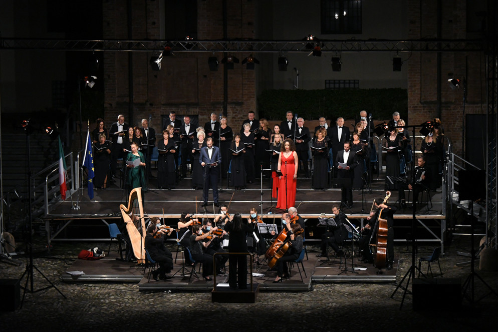 Un concerto raffinato e ben organizzato ha ricordato le vittime della pandemia nel cortile di Palazzo Farnese a Piacenza. Le incognite della nuova stagione restano ma in uno dei luoghi simbolo della città, le note hanno suonato per mostrare “Il coraggio di ricominciare”, questo il titolo scelto per l’evento organizzato dalla maestra e direttrice d’orchestra Patrizia Bernelich con il Secondo Reggimento del Genio Pontieri dell’Esercito, in sinergia con l’amministrazione comunale. La serata condotta da Rita Nigrelli e Marilena Massarini, si è aperta con i saluti del sindaco Patrizia Barbieri e del comandante del Genio Pontieri, colonnello Salvatore Tambè prima di passare all’Ave Verum di Mozart e brani d’opera di Rossini, Bizet, Verdi, Mascagni, Puccini.