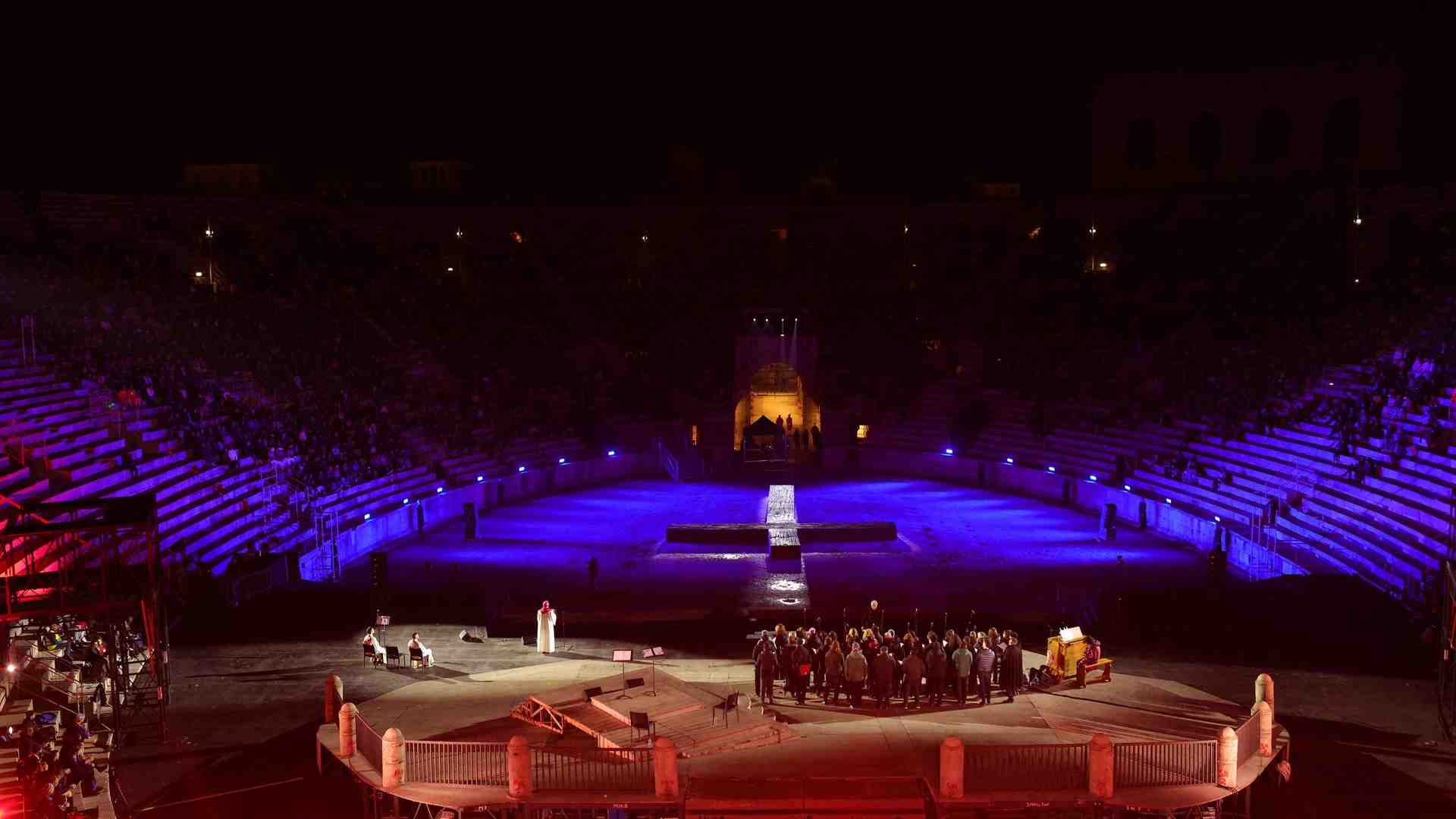 «Con il canto commovente di Verdi e il suo appello nel Simon Boccanegra, “E vo gridando pace! E vo gridando amor!”, ci siamo stretti attorno a papa Francesco, l’anno scorso, in Arena – ha osservato Cecilia Gasdia, sovrintendente di Fondazione Arena di Verona –. Un messaggio universale, accorato, gridato in quel luogo universale che è l’Arena di Verona. Lo ribadiamo quest’anno, nel Giubileo della speranza, con questa speciale Via Crucis, giunta alla terza edizione. Come Fondazione Arena di Verona siamo felici di essere al fianco della Diocesi e del Comune di Verona affinché, nel silenzio di quel giorno, l’appello di pace, con il canto e le preghiere di tutte queste diverse forze unite, possa levarsi più forte dal nostro anfiteatro nel mondo».